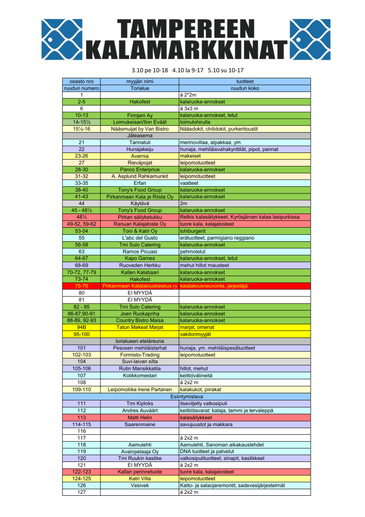 Kalamarkkinapaikkoihin ja ilmoittautumiseen liittyvät asiat:
